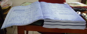 營建業,建築師事務所,工程顧問公司必須將cad檔案輸出至二原圖(描圖紙)再由藍曬機曬圖,即一般所稱之藍圖